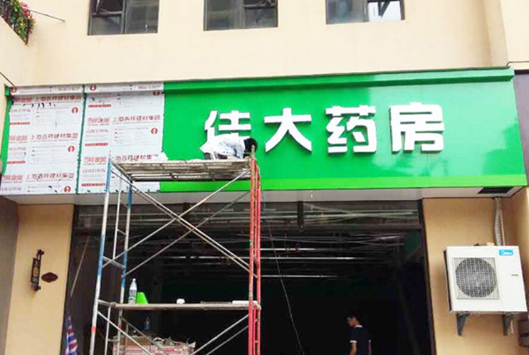 其招牌面板采用鋁塑板,具有良好的抗紫外線,永不生銹,及平整度一致等優(yōu)點(diǎn),成為藥店,大藥房廣告招牌制作底板的不二之選。